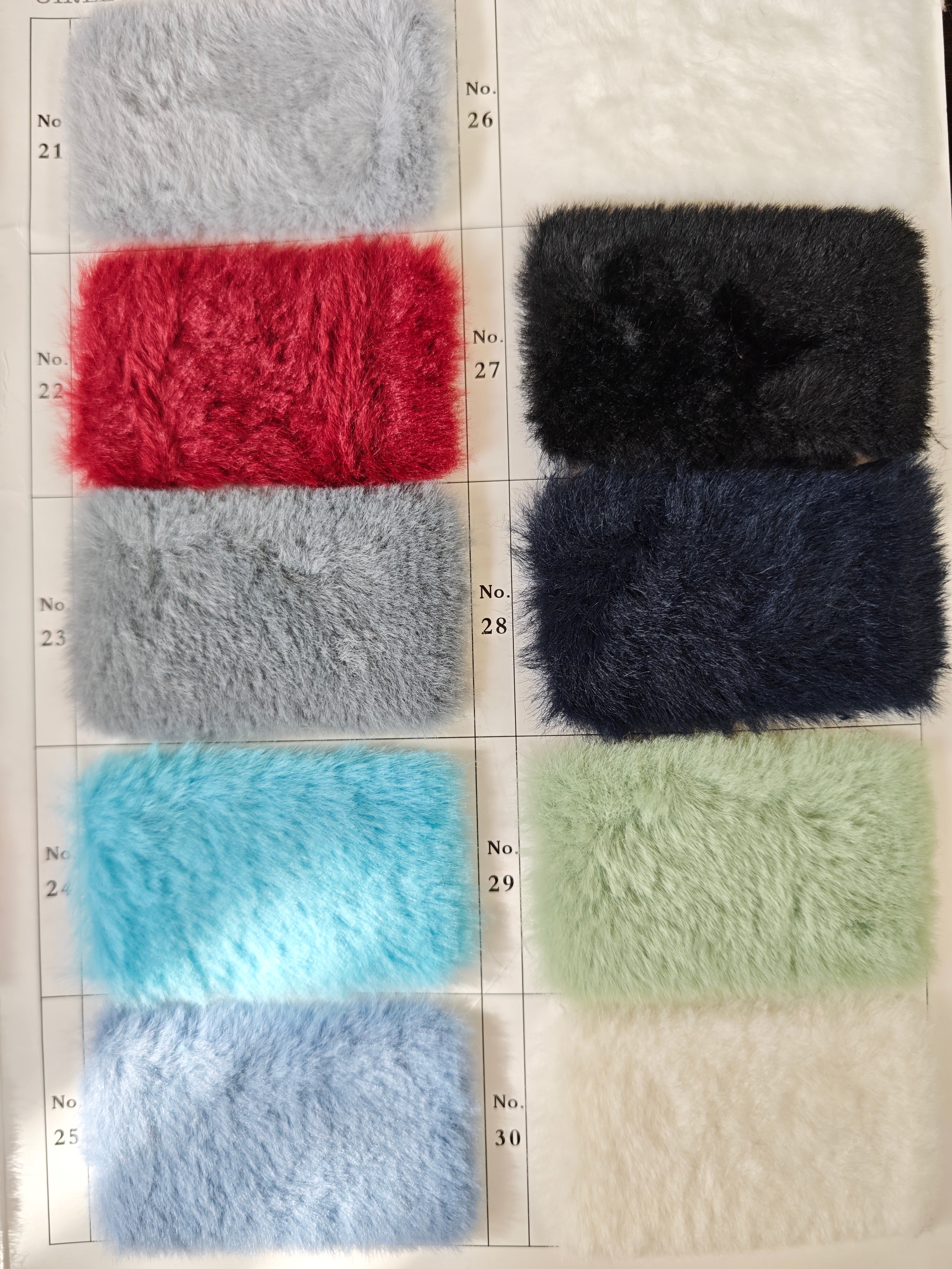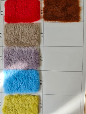 This swatch card includes all available colors from the Dense Lazy Rabbit Faux Fur Series, perfect for confirming true color and pile texture before ordering fabric.